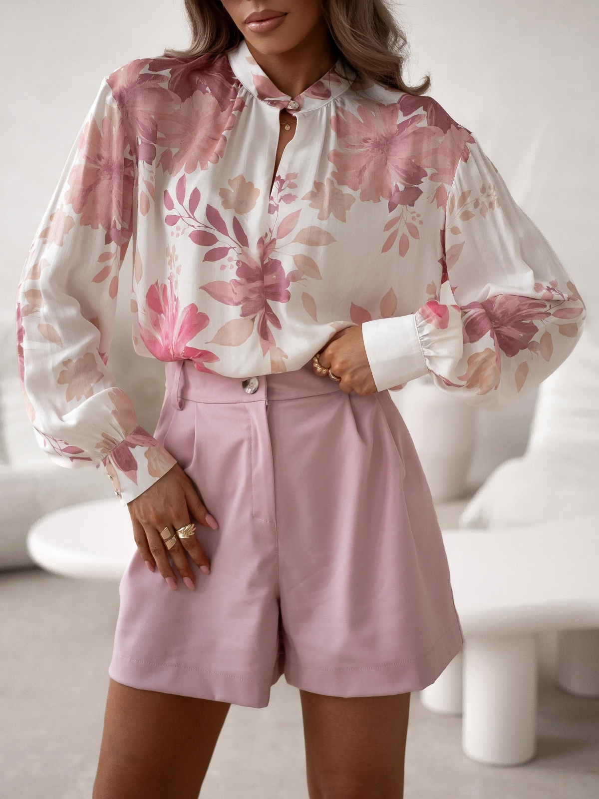 Koszula o swobodnym fasonie. Zapinana na złote, małe guziki. Rękaw wykończony wysokim mankietem.