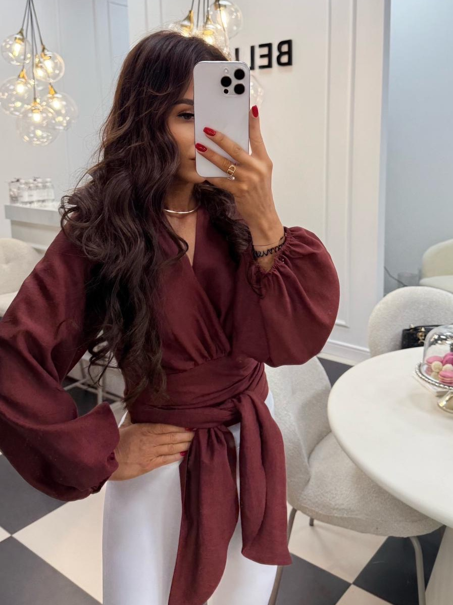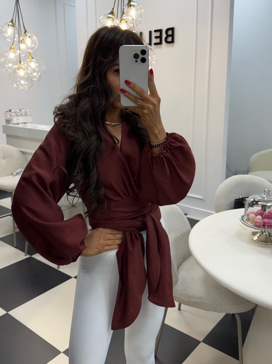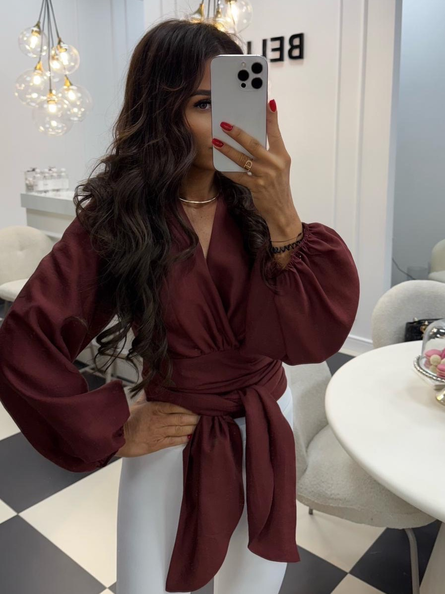 Odkryj niesamowicie elegancką koszulę premium, która łączy kobiecy szyk z niezwykłą wygodą. Dzięki opcji wiązania w talii możesz z łatwością dopasować ją do swojej sylwetki.