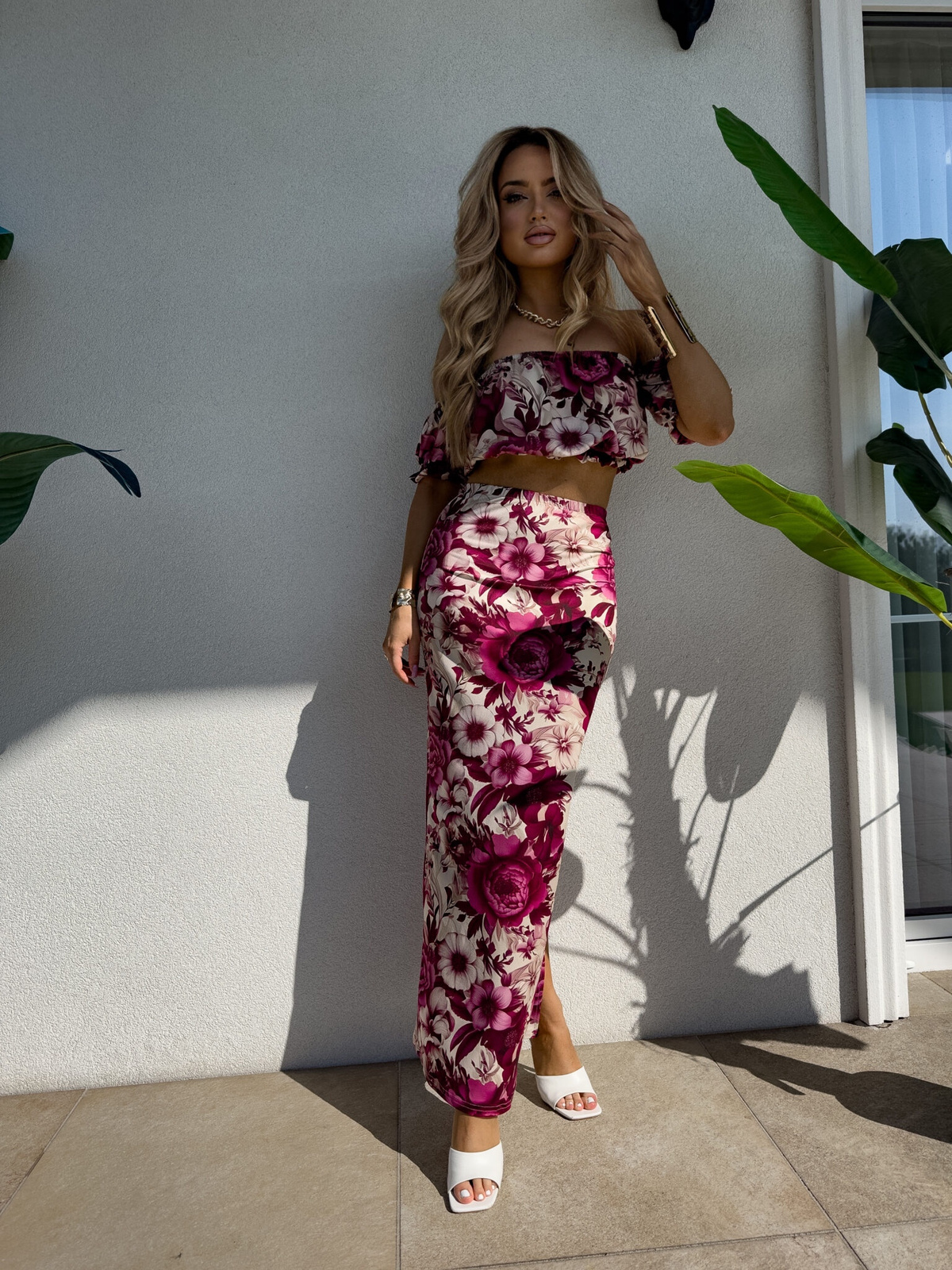 Całość stanowi doskonały wybór na letnie dni, na wyjątkowe okazje lub codzienne stylizacje z nutą elegancji.