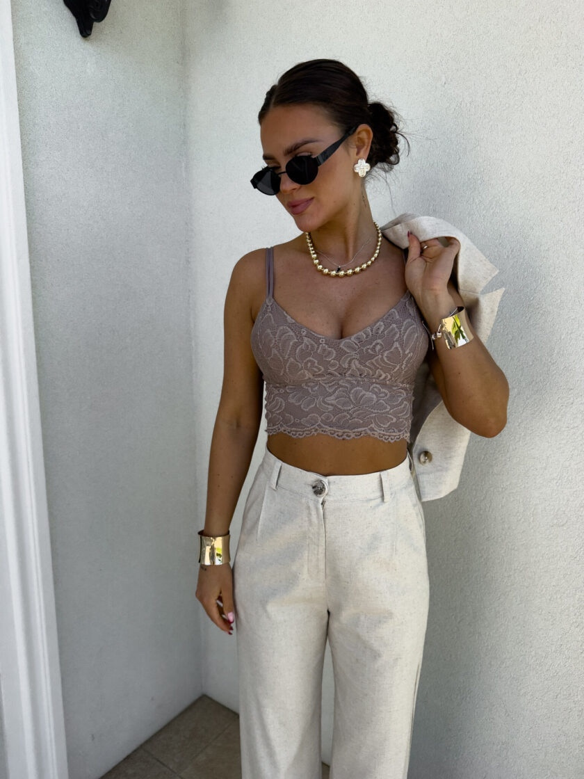 Nasze koronkowe top na ramiączkach to wyjątkowy element, który doda klasy i szyku każdej Twojej stylizacji. Dzięki wysokiej jakości materiałowi i misternemu wykończeniu, z pewnością stanie się ulubionym elementem w Twojej garderobie.