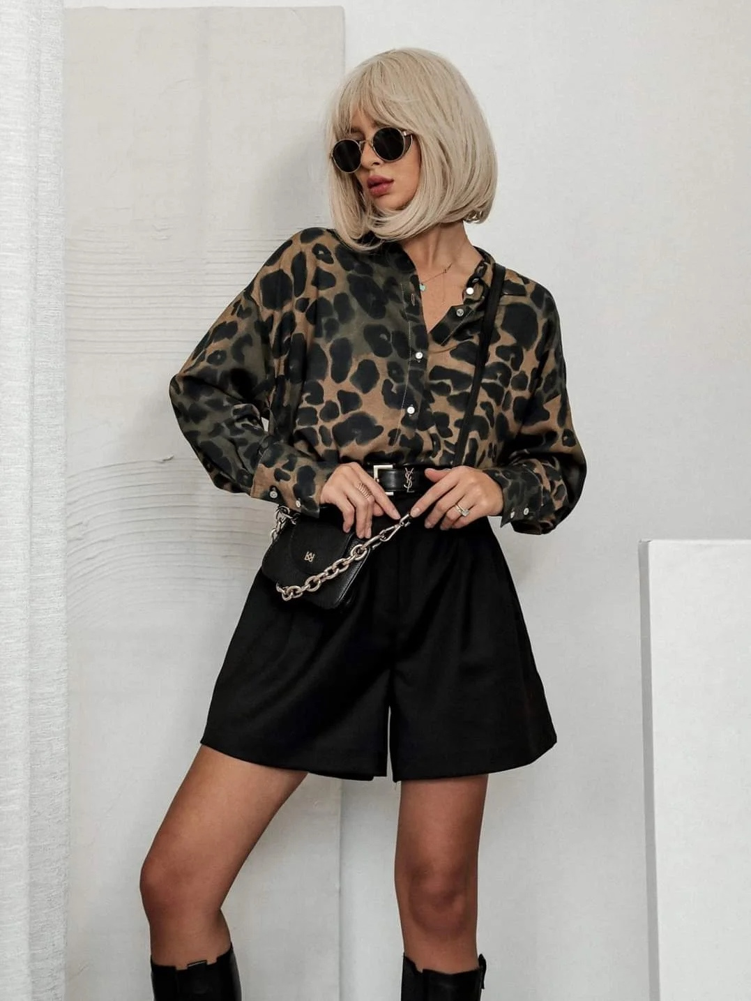 Wprowadź do swojej garderoby odrobinę dzikości dzięki naszej modnej koszuli z wiskozy w zwierzęce printy! Ta wyjątkowa odzież łączy w sobie wygodę, styl i efektowny design, dzięki czemu wyróżnisz się w każdej sytuacji.