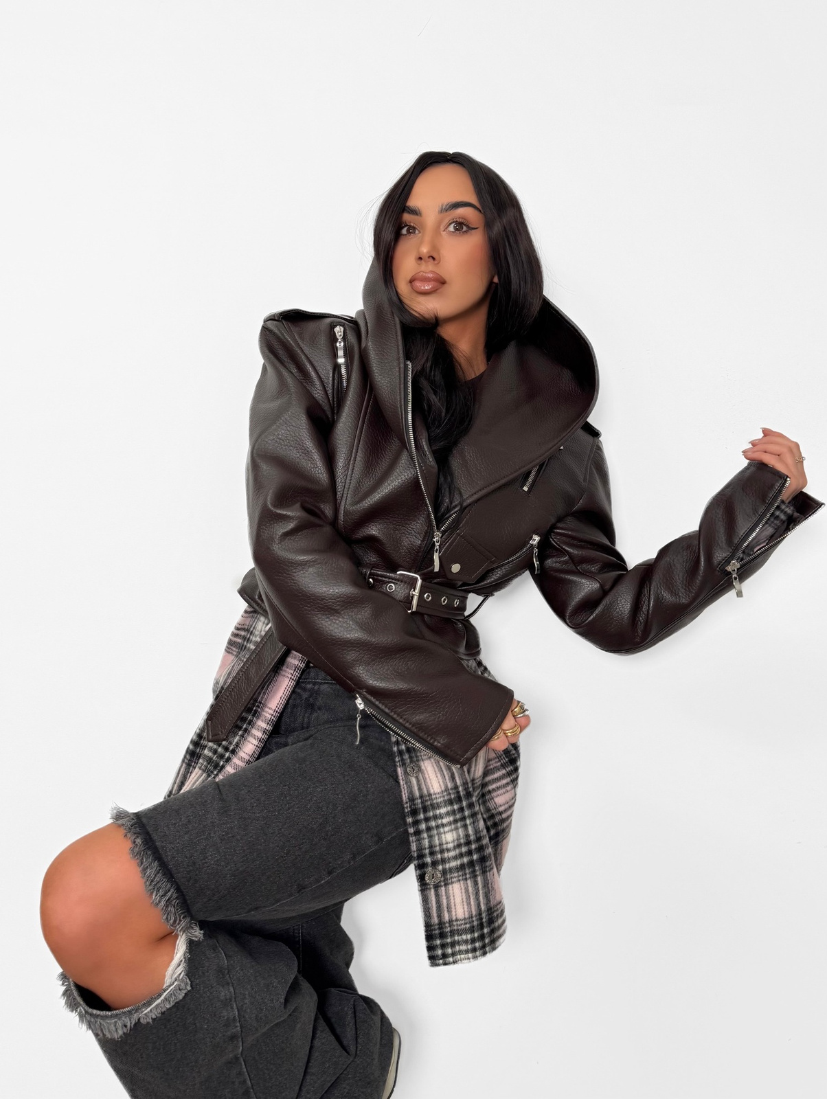 - Ramoneska z ekoskóry w jakości premium z kapturem, która łączy modne wzornictwo z praktycznością. Ten wyjątkowy element garderoby to must-have dla każdego fana nowoczesnych trendów, oferujący zarówno stylowy wygląd, jak i komfort noszenia.