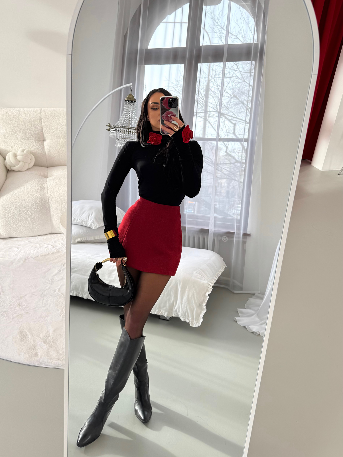 Zestaw spódnico-spodenki z ciepłym swetrem oraz botkami. Dzięki temu uzyskasz komfortowy, ale jednocześnie modny look, który świetnie sprawdzi się podczas spacerów czy spotkań przy kawie.